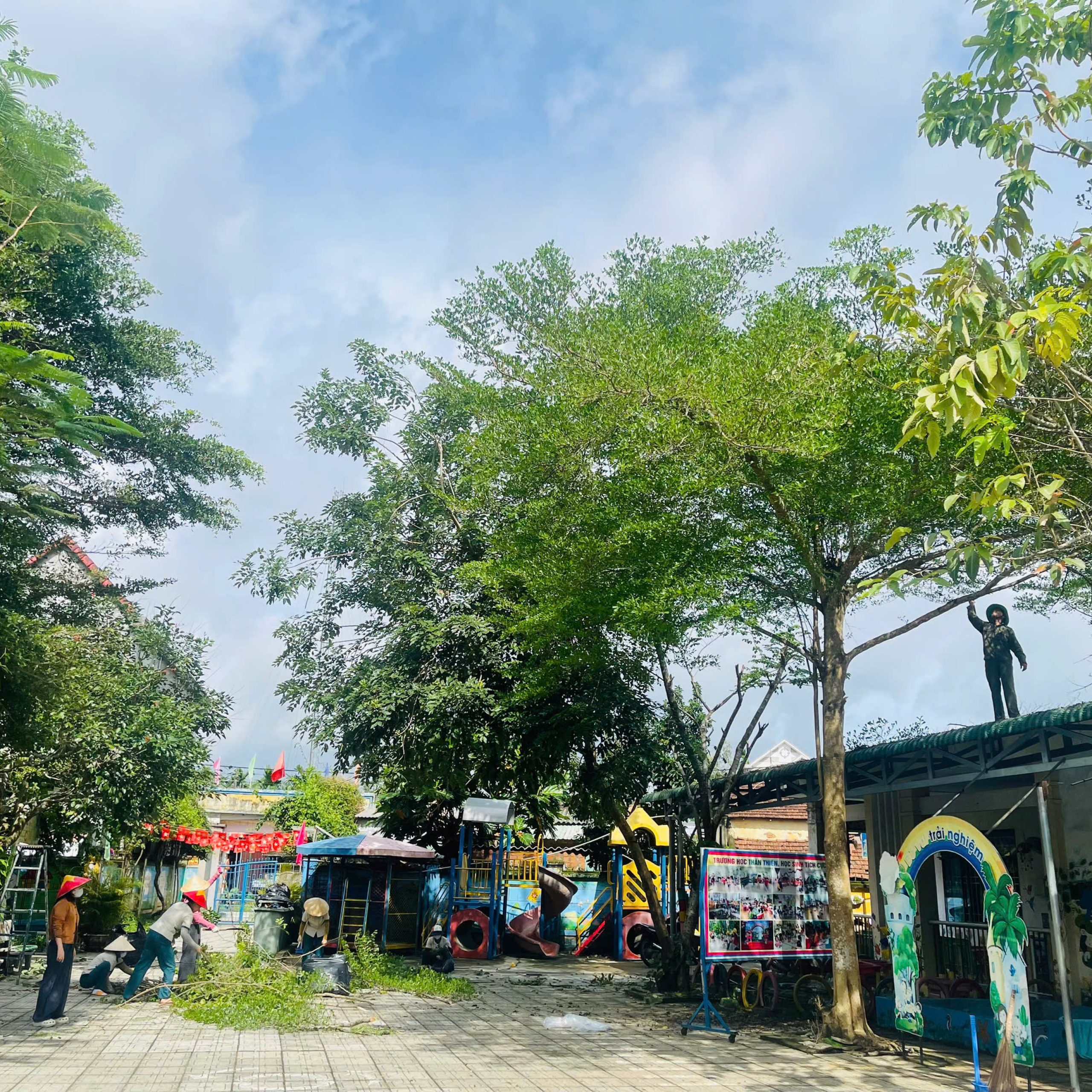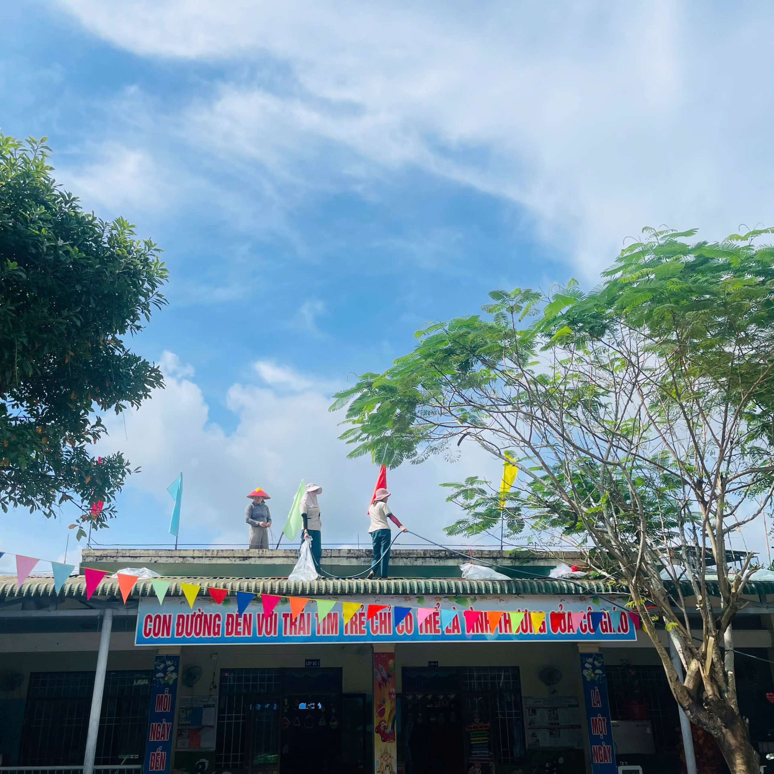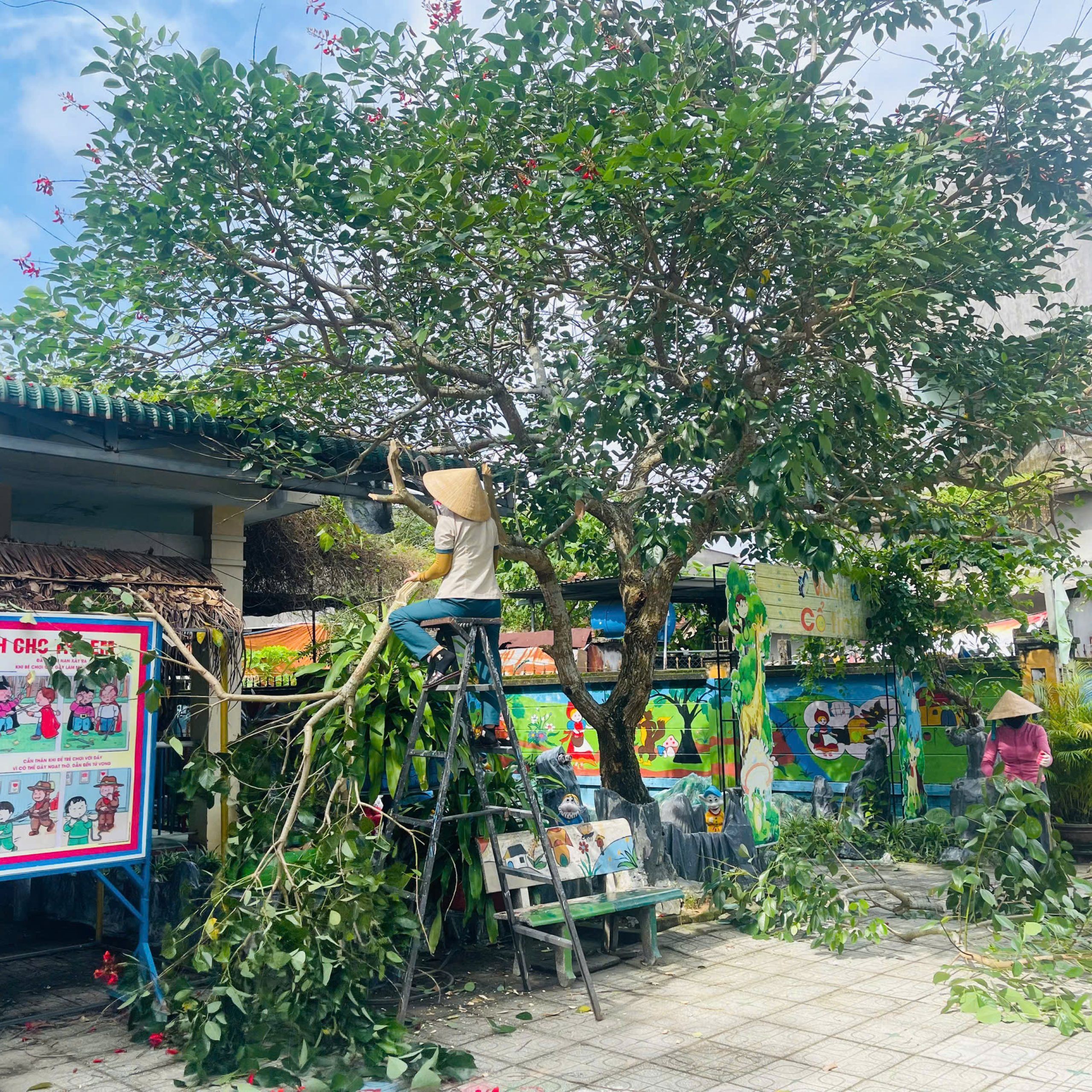 Ngay từ khi có thông tin về cơn bão số 13, Ban giám hiệu nhà trường đã nhanh chóng xây dựng kế hoạch, phân công nhiệm vụ cụ thể cho từng tổ, từng cá nhân. Toàn bộ cán bộ, giáo viên, nhân viên tích cực tham gia công tác chặt tỉa cây xanh, chằng các mái hiên trước các phòng học, ..