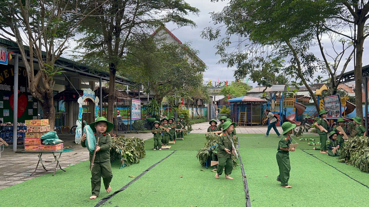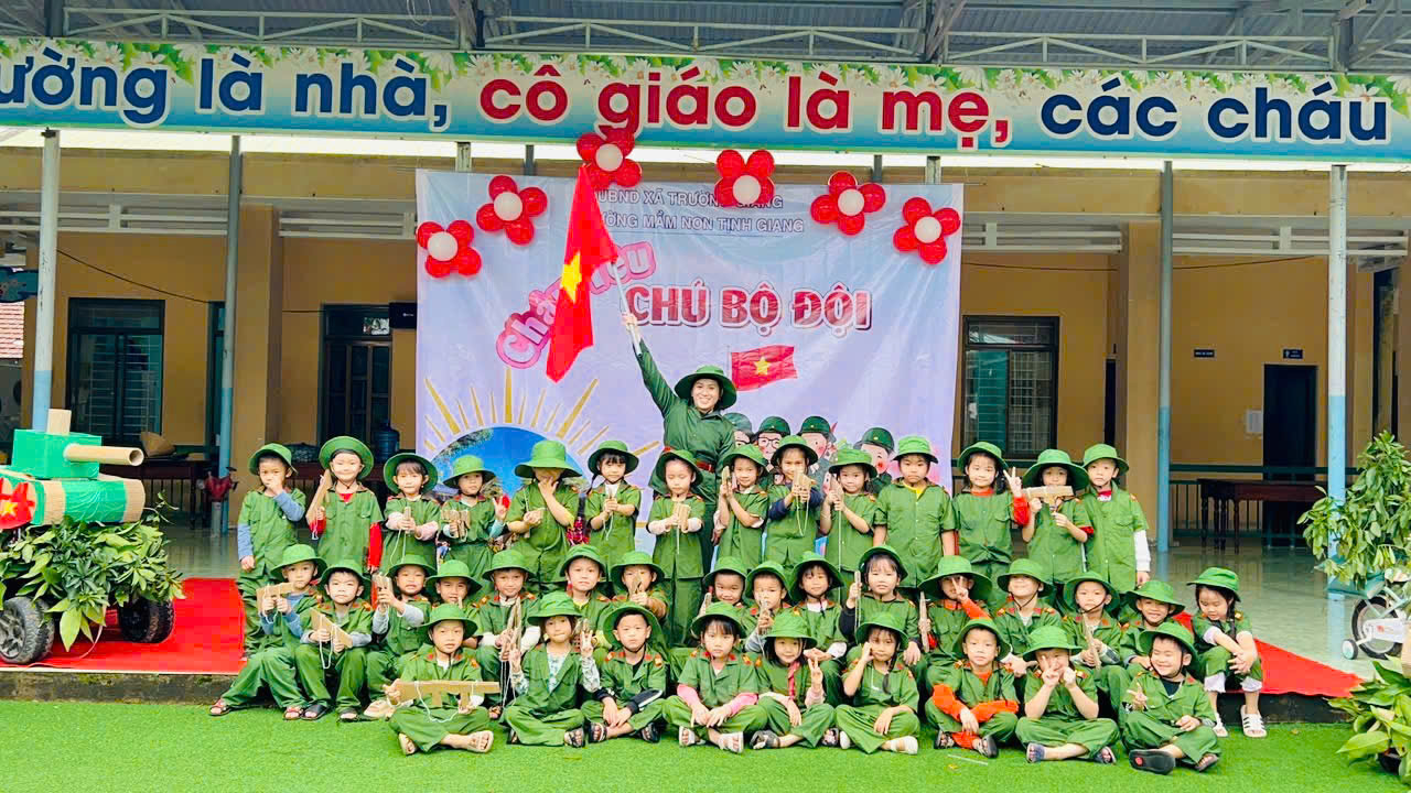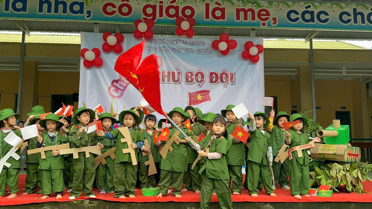 Hòa trong không khí thi đua hướng tới kỷ niệm 81 năm Ngày thành lập Quân đội Nhân dân Việt Nam (22/12/1944 – 22/12/2025), Chiều ngày 19/12/2025 Tại trường Mầm non Tịnh Giang đã tổ chức hoạt động trải nghiệm “Cháu làm chú bộ đội”. Đây là một trong những hoạt động giáo dục truyền thống có ý nghĩa sâu sắc, góp phần bồi dưỡng cho trẻ lòng tự hào dân tộc và tình yêu đối với hình ảnh anh Bộ đội Cụ Hồ.Qua hoạt động trải nghiệm “Cháu làm chú bộ đội”. Hình ảnh chú bộ đội đến với trẻ trở nên gần gũi và thân thuộc hơn, không phải chỉ nghe cô kể chuyện, không phải chỉ xem trên màn hình ti vi, mà hôm nay trẻ được quan sát về quân phục, được khoác lên người bộ quân phục, cách ngụy trang khi hành quân. Những hành động rất đỗi quen thuộc và thân thương gắn liền trong tiềm thức của trẻ nuôi dưỡng ước mơ trở thành chú bộ đội. Trẻ tham gia trải nghiệm tác phong nhanh nhẹn, tinh thần trách nhiệm một cách vui tươi, bổ ích đầy hứng thú.Một số hình ảnh hoạt động: