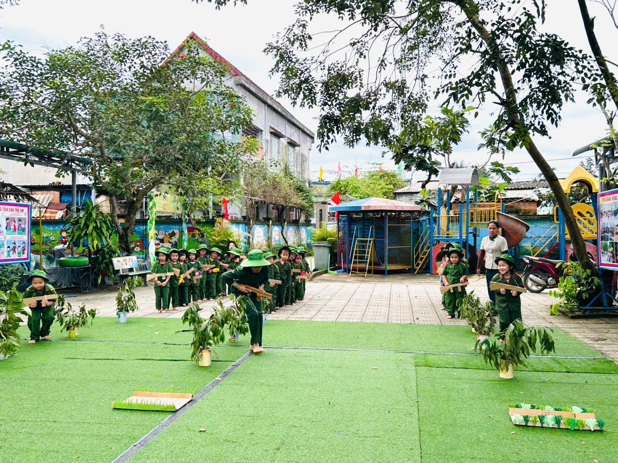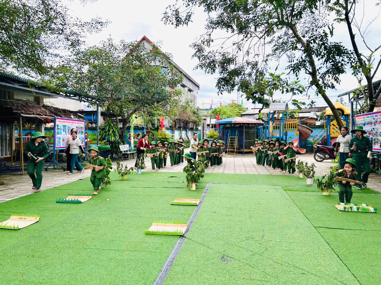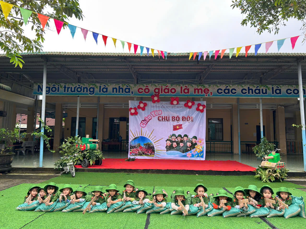 Hòa trong không khí thi đua hướng tới kỷ niệm 81 năm Ngày thành lập Quân đội Nhân dân Việt Nam (22/12/1944 – 22/12/2025), Chiều ngày 19/12/2025 Tại trường Mầm non Tịnh Giang đã tổ chức hoạt động trải nghiệm “Cháu làm chú bộ đội”. Đây là một trong những hoạt động giáo dục truyền thống có ý nghĩa sâu sắc, góp phần bồi dưỡng cho trẻ lòng tự hào dân tộc và tình yêu đối với hình ảnh anh Bộ đội Cụ Hồ.Qua hoạt động trải nghiệm “Cháu làm chú bộ đội”. Hình ảnh chú bộ đội đến với trẻ trở nên gần gũi và thân thuộc hơn, không phải chỉ nghe cô kể chuyện, không phải chỉ xem trên màn hình ti vi, mà hôm nay trẻ được quan sát về quân phục, được khoác lên người bộ quân phục, cách ngụy trang khi hành quân. Những hành động rất đỗi quen thuộc và thân thương gắn liền trong tiềm thức của trẻ nuôi dưỡng ước mơ trở thành chú bộ đội. Trẻ tham gia trải nghiệm tác phong nhanh nhẹn, tinh thần trách nhiệm một cách vui tươi, bổ ích đầy hứng thú.Một số hình ảnh hoạt động: