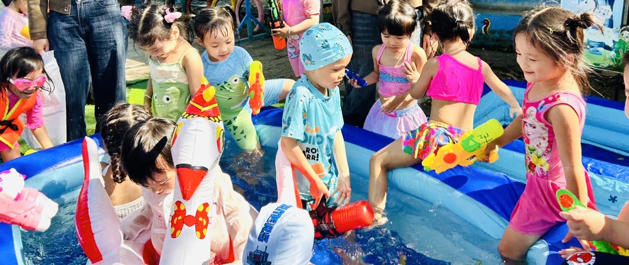 Còn gì tuyệt vời hơn khi bé được thoả thích vẫy vùng giữa làn nước trong xanh mát lạnh cùng bạn bè, được tự do chơi đùa những trò chơi nước vô cùng hấp dẫn !!! Mỗi hoạt động tại Trường Mầm non Tịnh Giang là “sợi dây” gắn kết, mang tất cả các con lại gần nhau, hòa mình vào niềm vui của tập thể.