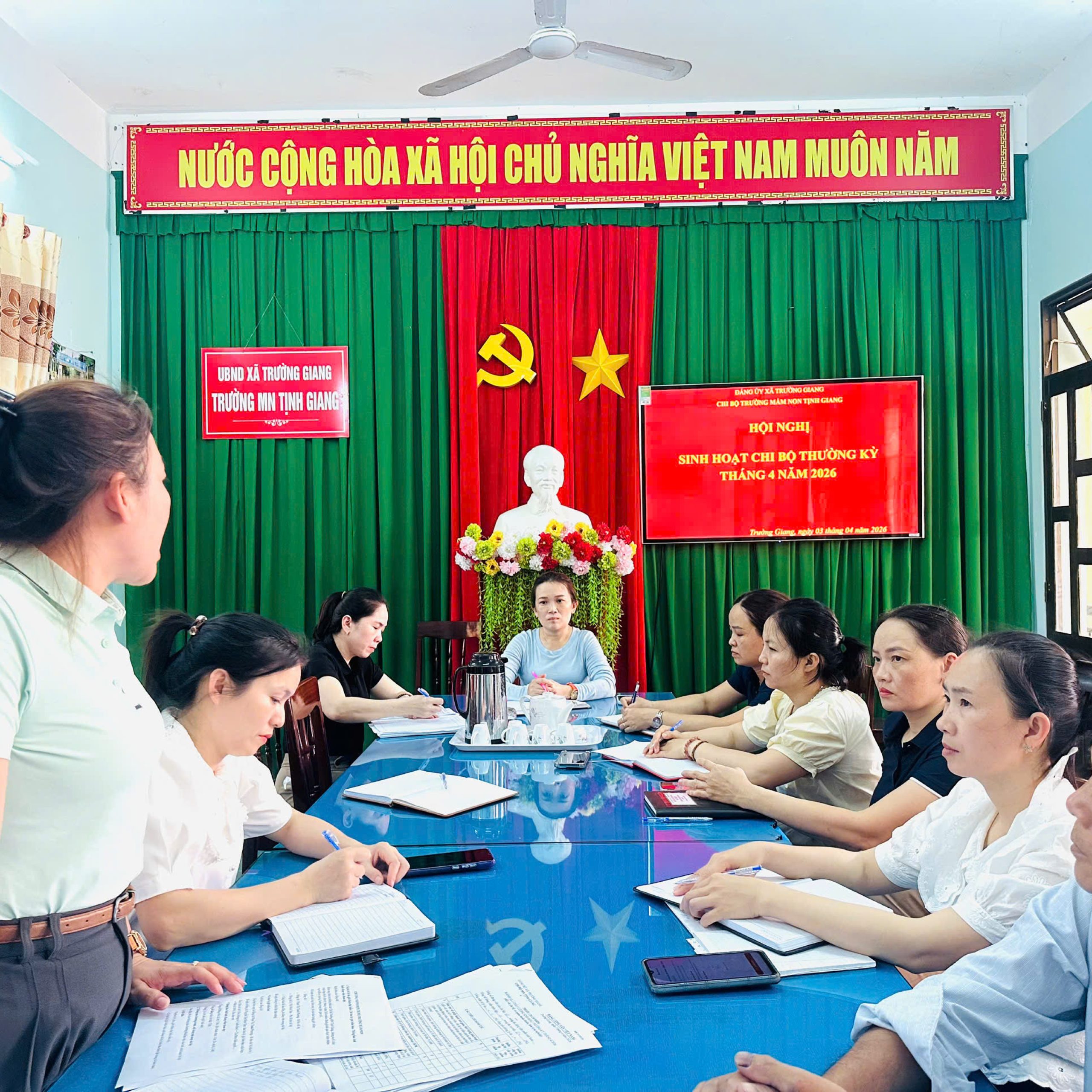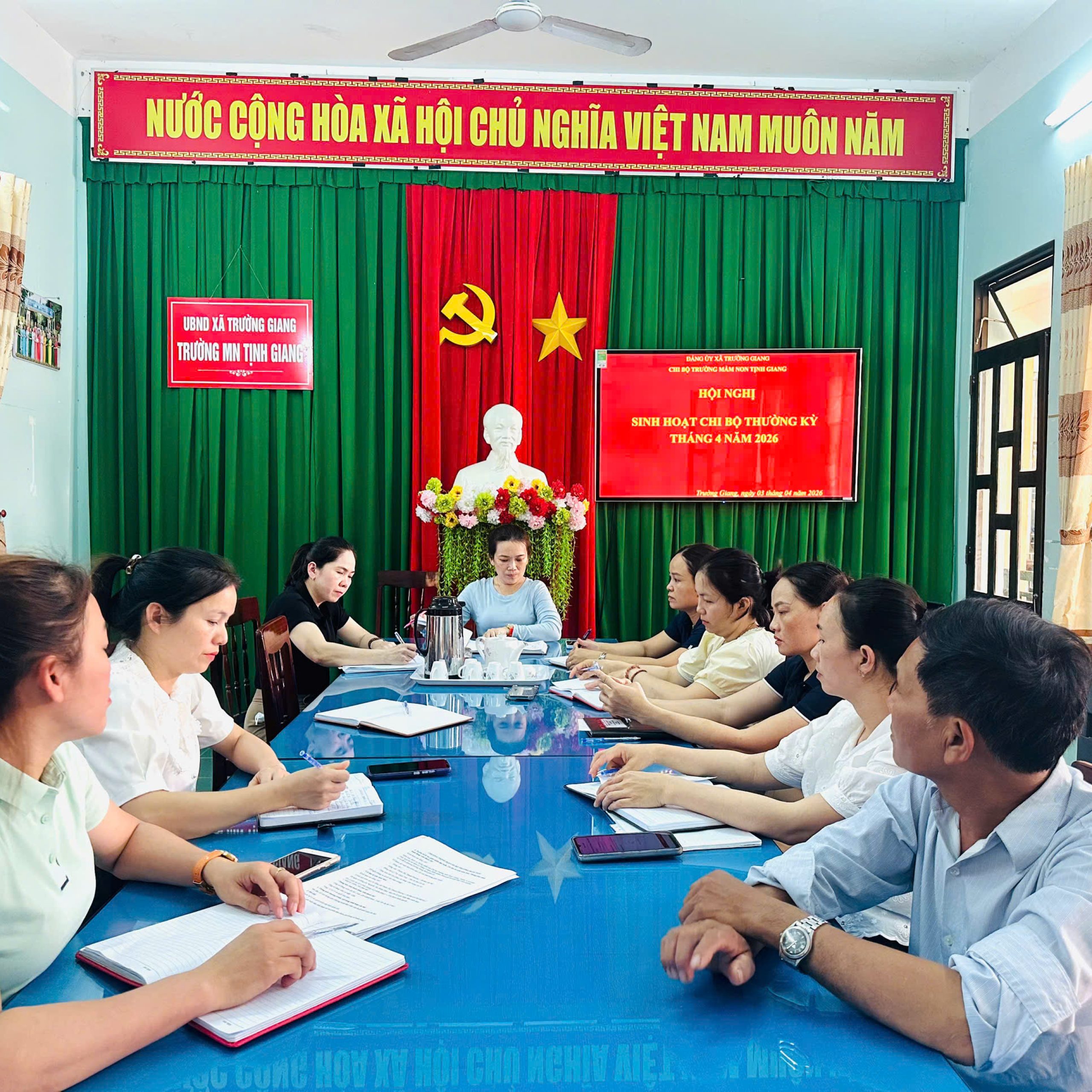 Chiều ngày 03/04, chi bộ trường Mầm non Tịnh Giang tổ chức sinh hoạt chi bộ thường kỳ tháng 4 theo tinh thần Chỉ thị số 50 của Ban Bí thư về tiếp tục đổi mới và nâng cao chất lượng sinh hoạt chi bộ trong giai đoạn mới .